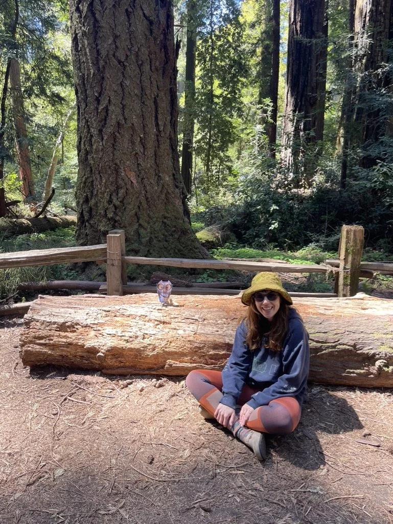 ME WITH A PAPER CUTOUT OF WOL IN THE REDWOOD FOREST